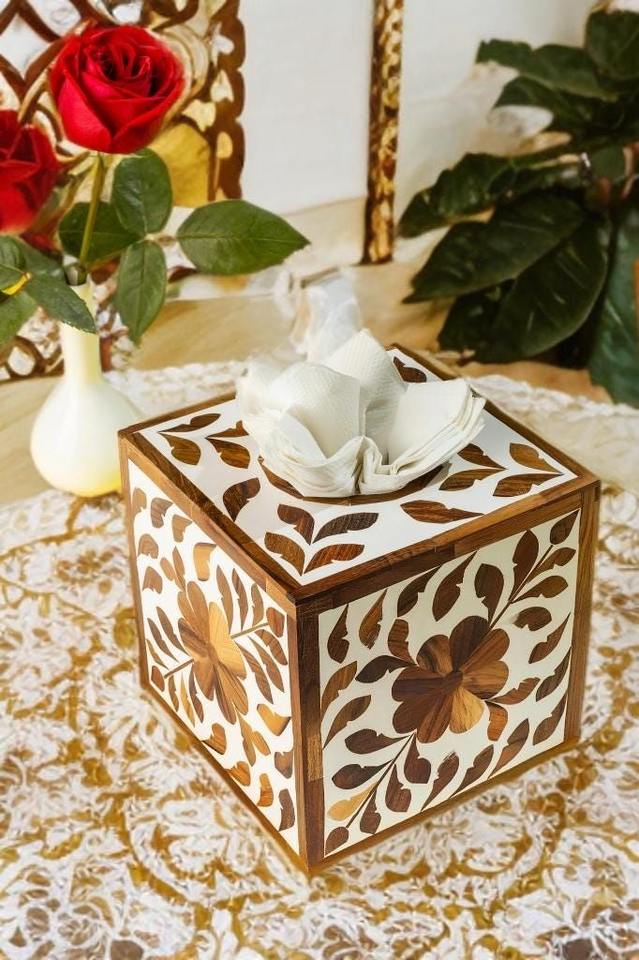 Caja de pañuelos de madera hecha a mano, hecha de madera maciza de mango, perfecta para una mesa elegante y una exhibición en la encimera