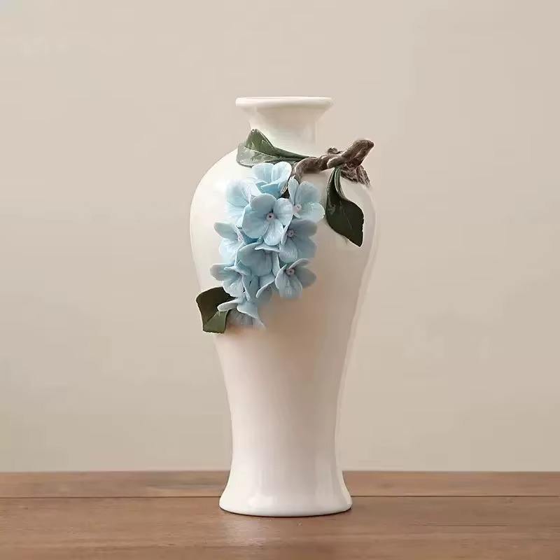 Descripción:"Jarrones elegantes con delicados patrones florales que aportan serenidad a la habitación."
