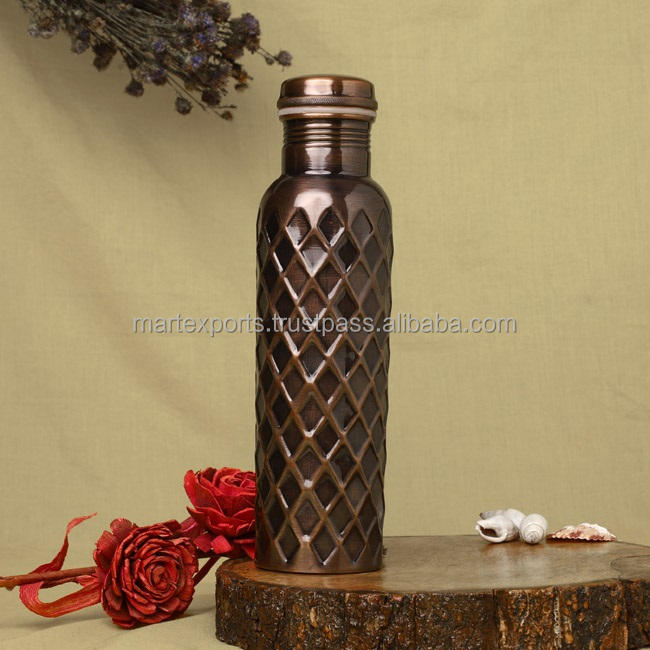 Botella de agua artesanal de cobre macizo para el hogar, la oficina y viajes, que promueve una hidratación saludable, inmunidad y una vida equilibrada.