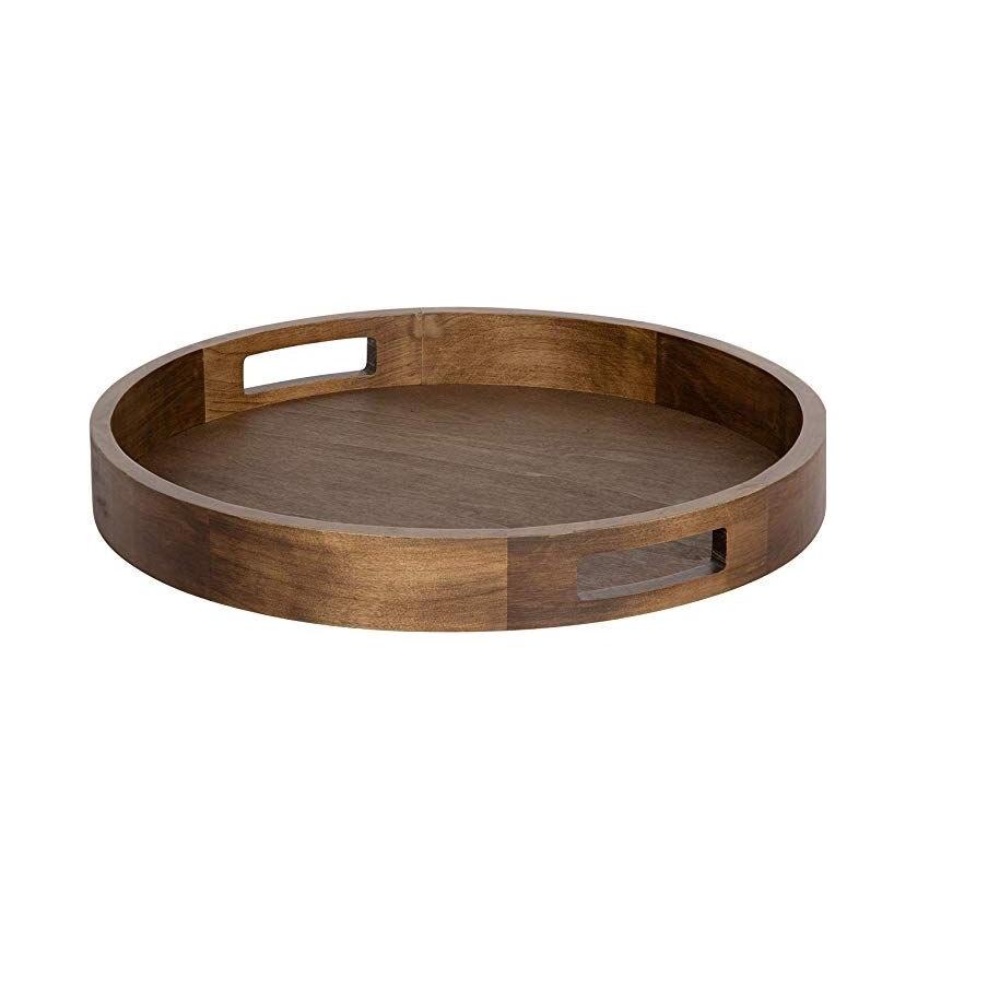 Bandeja de servicio de madera de mango macizo hecha a mano con acabado recubierto de polvo blanco para uso de bebidas de té de desayuno de cocina de lujo