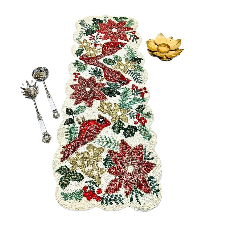 Tapete de camino de mesa artesanal con abalorios florales de loros para hoteles, bodas, banquetes y decoración navideña a un precio económico