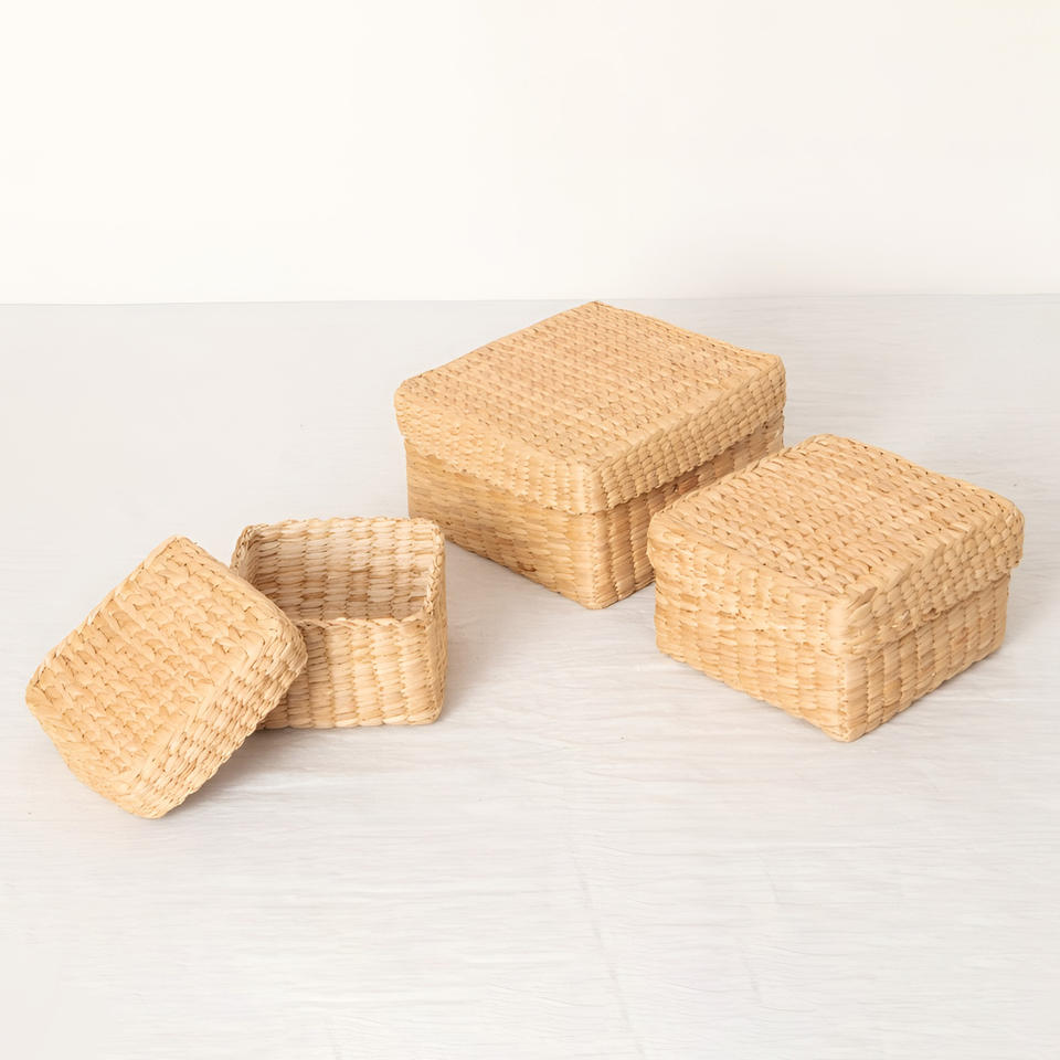Caja con Tapa de Jacinto de Agua Hecha a Mano, Cajas de Regalo Navideñas, Contenedores de Almacenamiento de Gran Calidad
