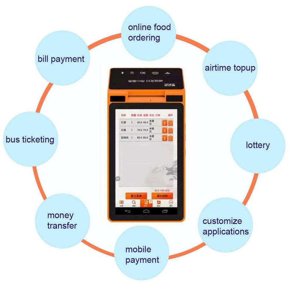 Terminal POS Portátil con Sistema Dual Android, Pantalla Táctil Doble de 7 Pulgadas, 2G/3G, WiFi, NFC e Impresora Integrada