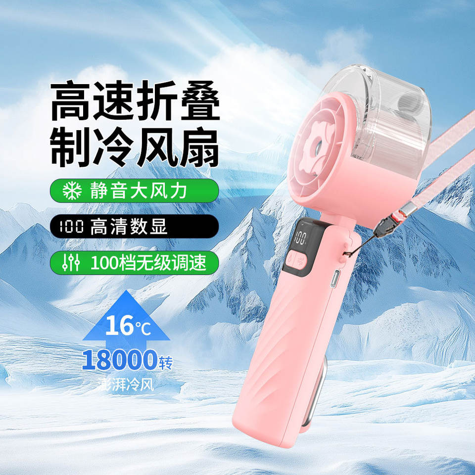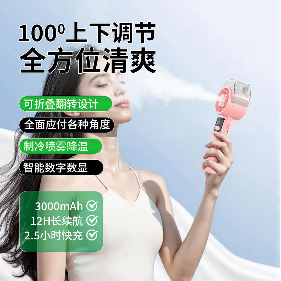 Ventilador de mano con pulverizador de turbina, miniventilador plegable portátil USB para uso en exteriores