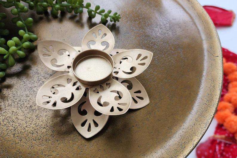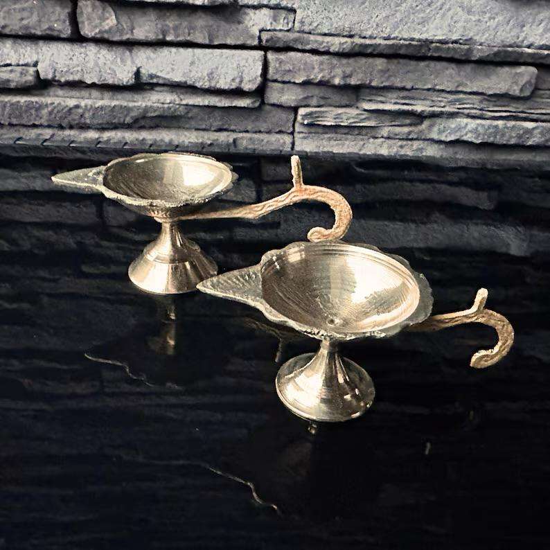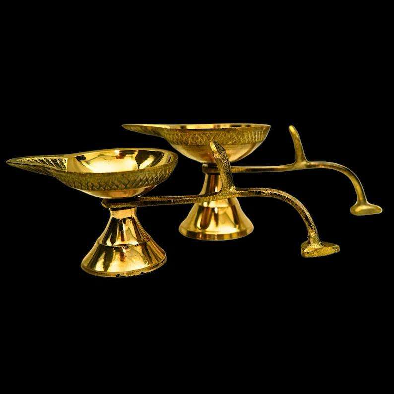 Mano dorado Aarti Ahkand Jyoti Diya con soporte latón Art Deco diseño boda y Diwali uso religioso directo de fábrica al por mayor
