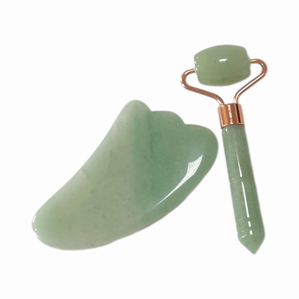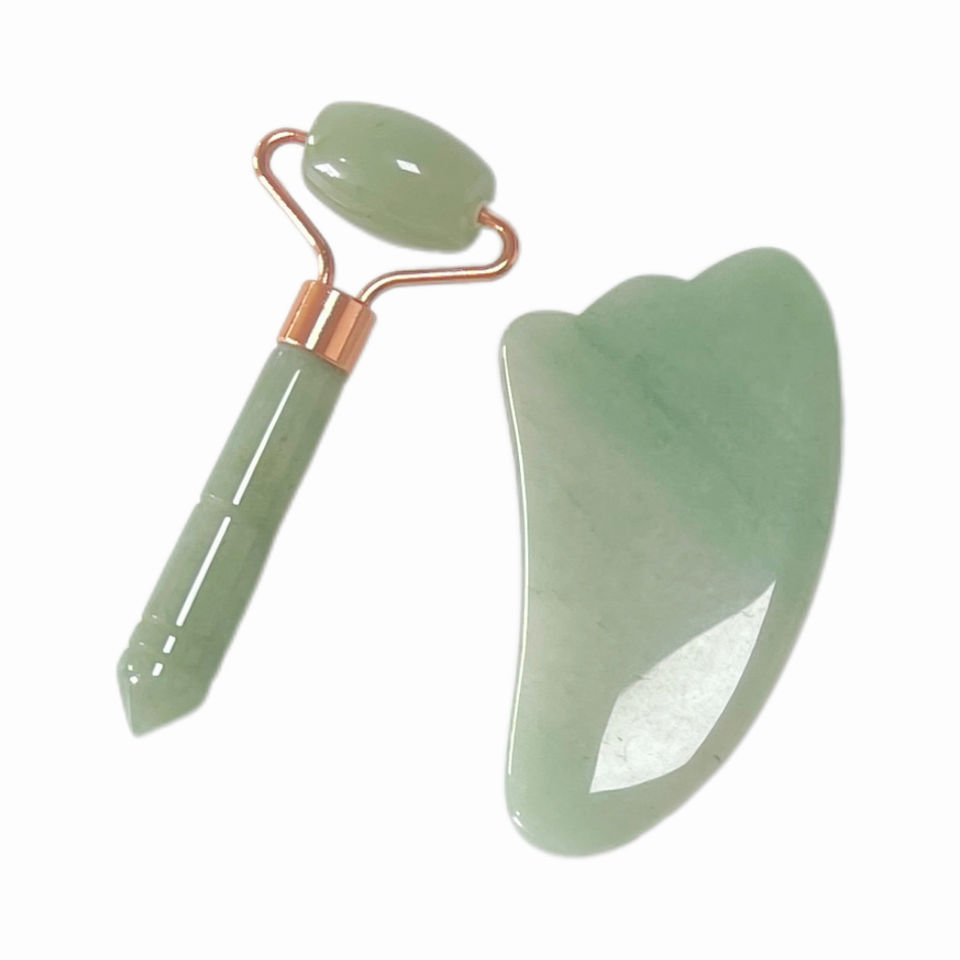 Rodillo de piedra de jade de cuarzo verde de mano, herramienta de masaje facial de belleza Gua Sha con rodillo de jade rosa para cara