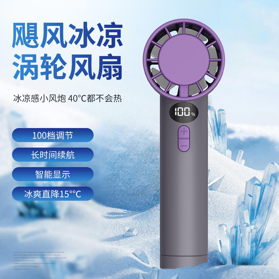 Ventilador portátil de alta velocidad con pantalla digital, sin aspas, recargable por USB, mini ventilador portátil para uso en exteriores.