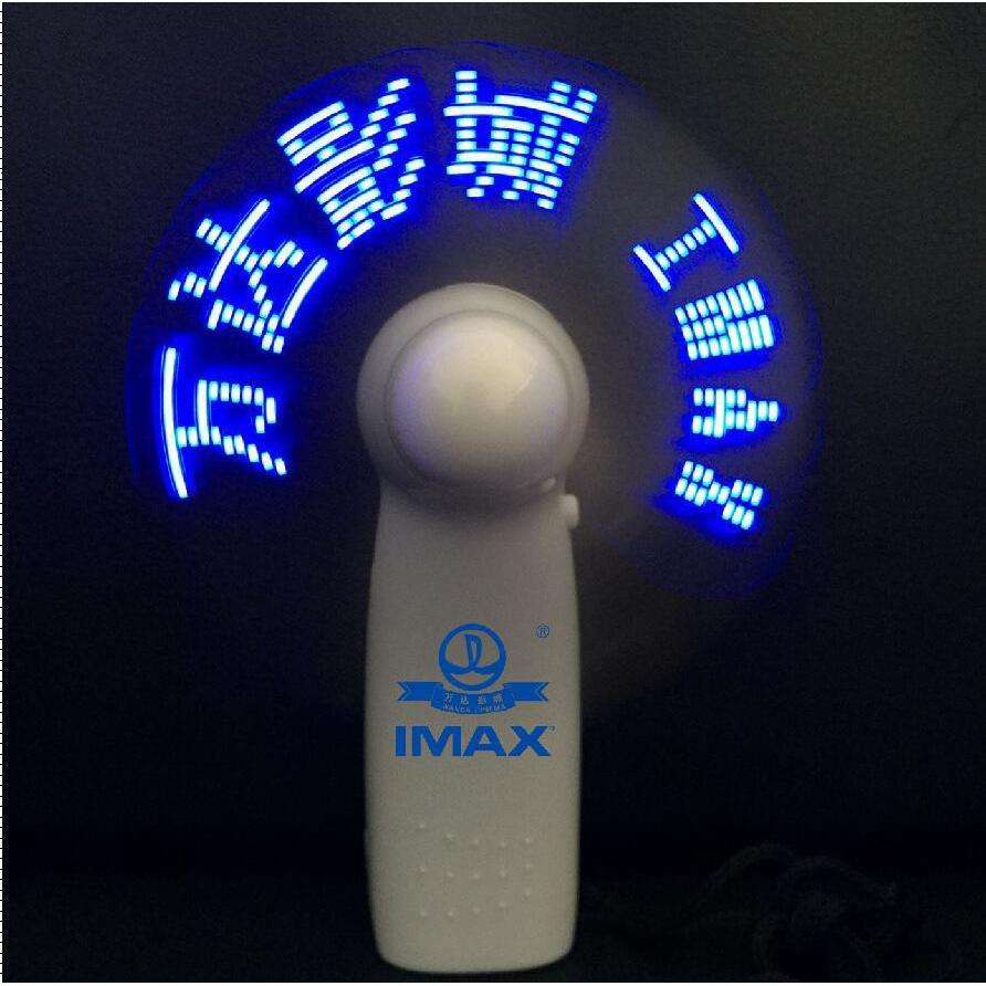 Ventilador LED de Mano con Función de Luz Intermitente y Texto, Estilo de Dibujos Animados, Aspas de PVC, Motor con Escobillas, Funciona con Pilas Secas