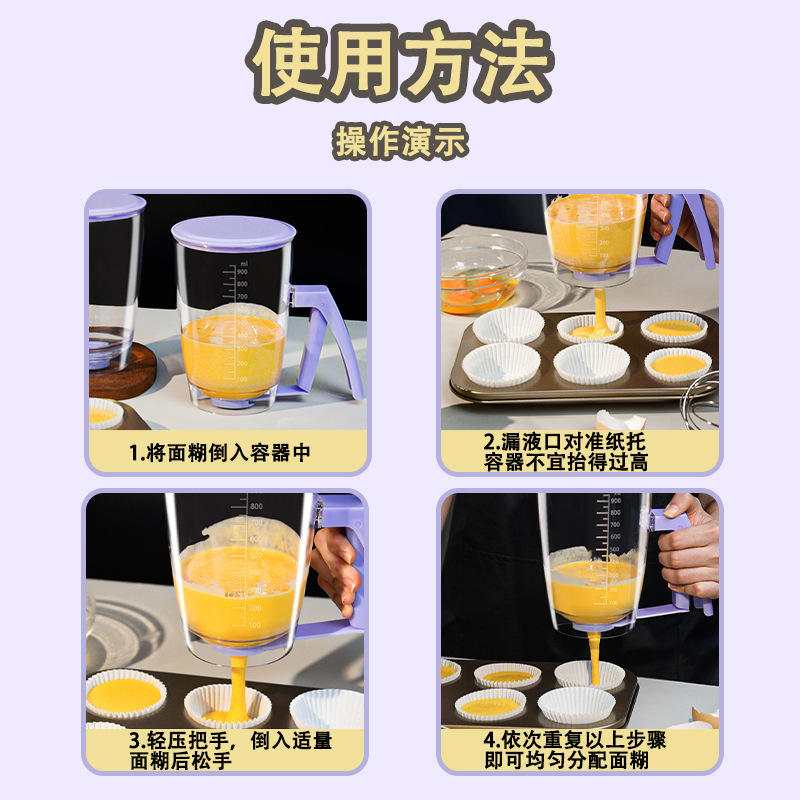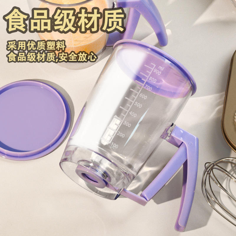 Taza Medidora de Mano con Escala, Color Morado, Utensilios para Repostería, Plástico de Grado Alimenticio, 900 ml