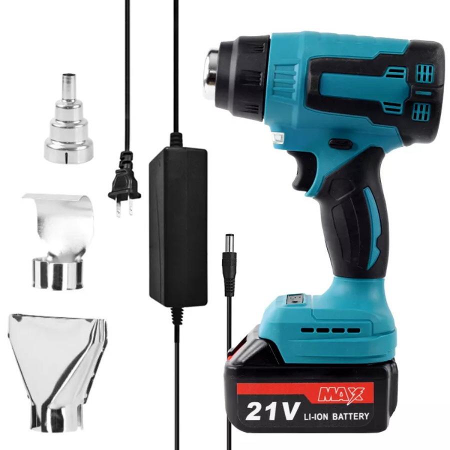 Pistola de Calor Inalámbrica Portátil Mini, Batería de Iones de Litio de 21 V, Temperatura Ajustable, con 3 Boquillas, Multifuncional