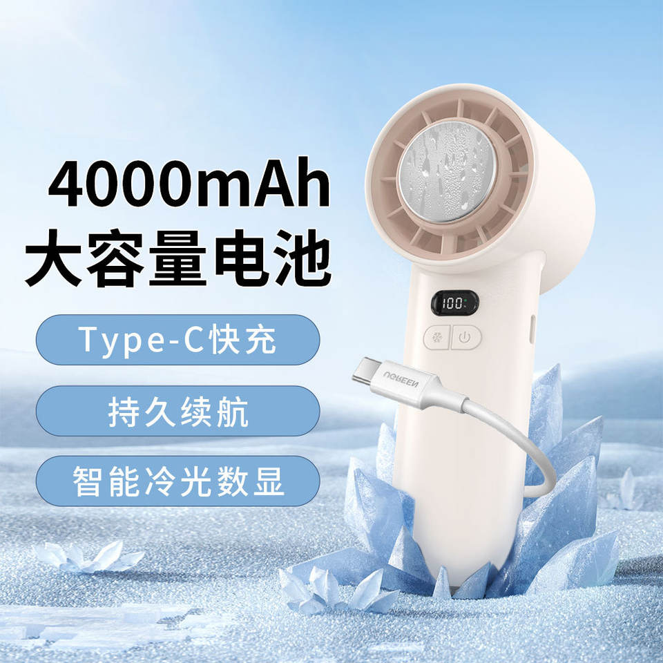 Mini Ventilador de Mano, Batería de 4000 mAh, Carga Rápida Tipo C, Pantalla Digital, Ventilador Portátil de Refrigeración