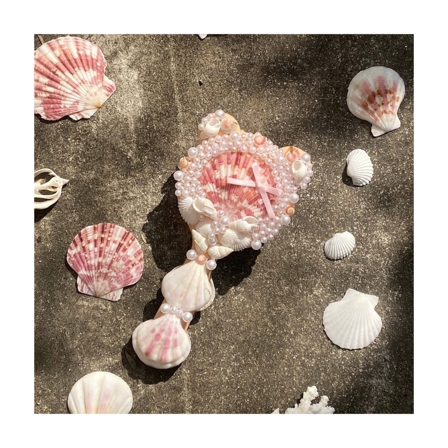 Espejo de mano decorado con conchas marinas naturales vieiras y conchas de cauri regalo de tocador inspirado en el océano para ella