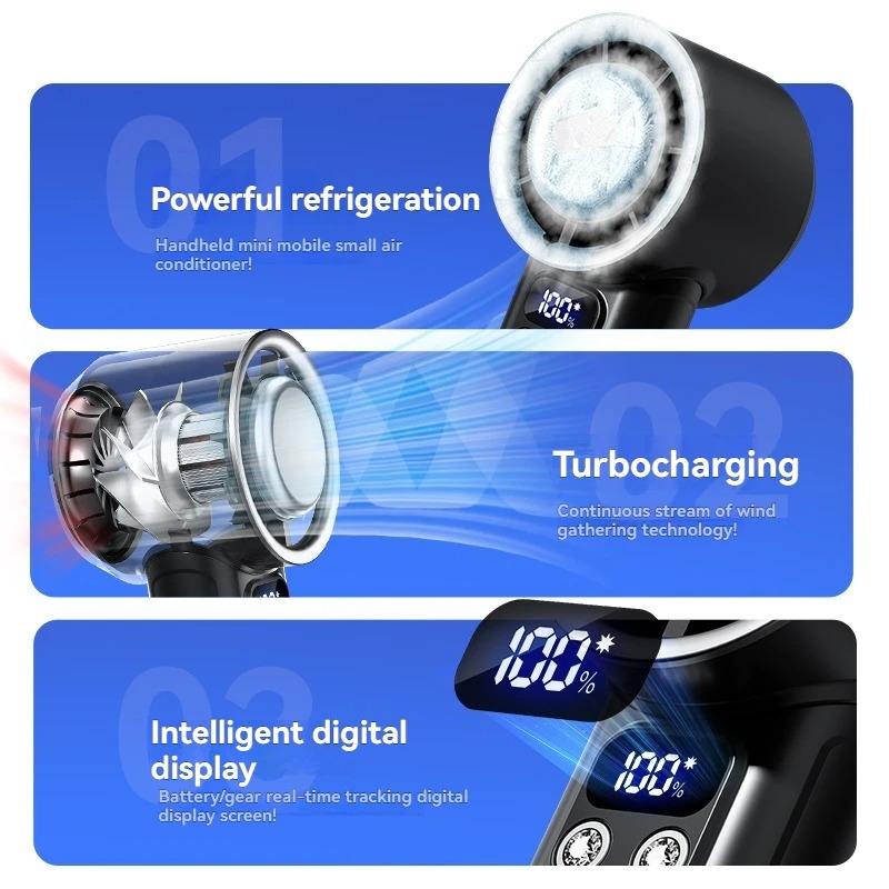 Ventilador Portátil de Mano con Semiconductor, 100 Niveles de Refrigeración, Carga USB, Práctico, con Correa y Batería de 2400mAh