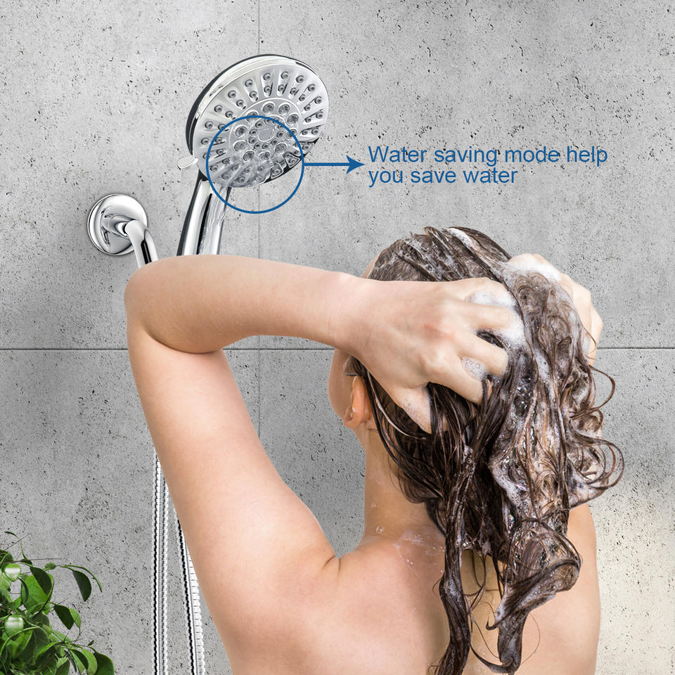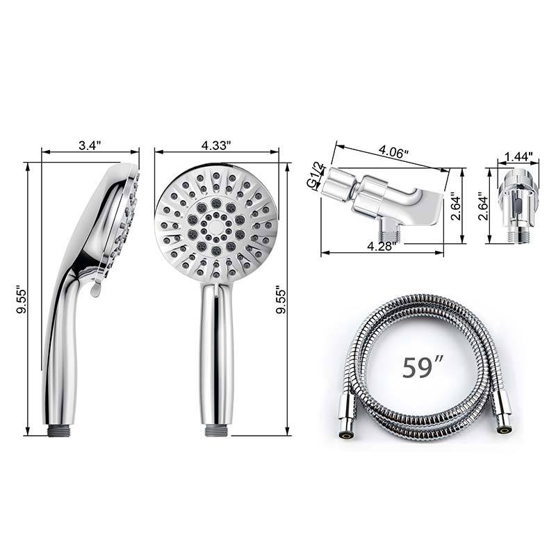 Juego de Ducha Portátil SS6701CP, Cabezal de Ducha Redondo Ajustable con Función de Lluvia y Masaje, Plateado, para Uso Doméstico