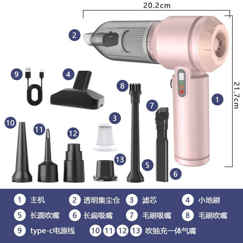 Aspiradora de mano de 0.3L para uso en seco y húmedo con luces LED, motor sin escobillas, para uso en el hogar, el coche y mascotas, funciona con batería.