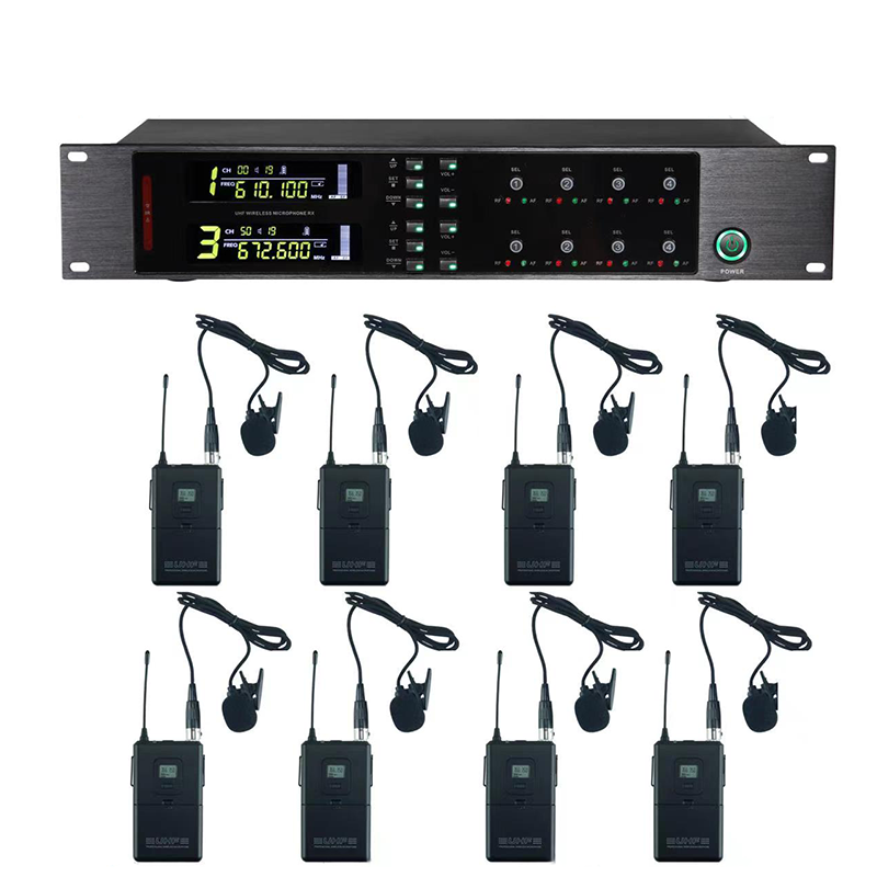 Micrófono de oreja de pecho inalámbrico de mano de uno a ocho con clip de diadema Conferencia de rendimiento de boda de escenario-Comunicación por cable