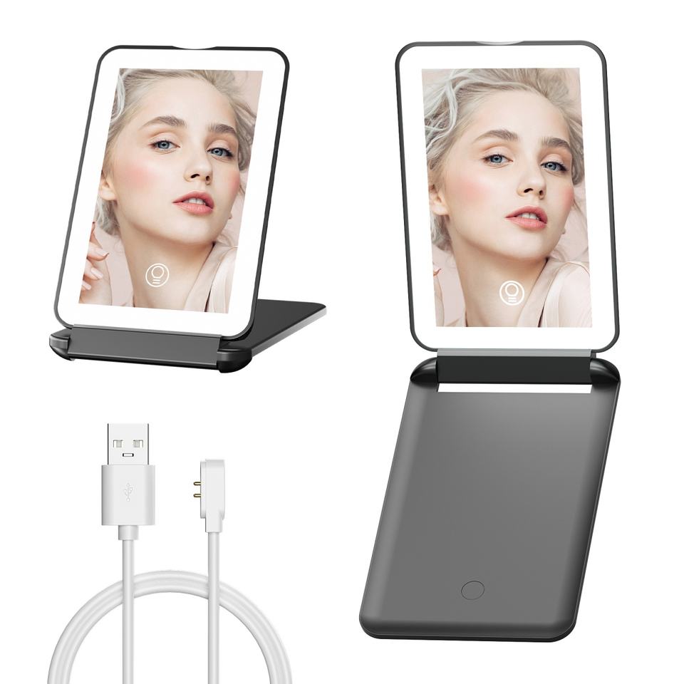 Espejo de Mano Portátil con Logotipo Personalizado, Espejo de Maquillaje Cosmético Plegable con Luz LED y Tu Logotipo