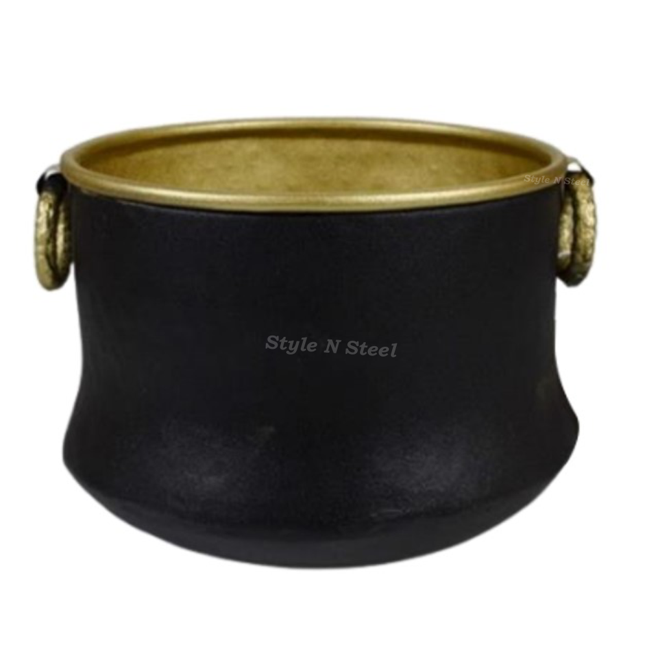 Maceta Handi de Hierro con Recubrimiento en Polvo, Duradera, Multiusos, Moderna y Clásica, para Interiores y Exteriores, con Drenaje