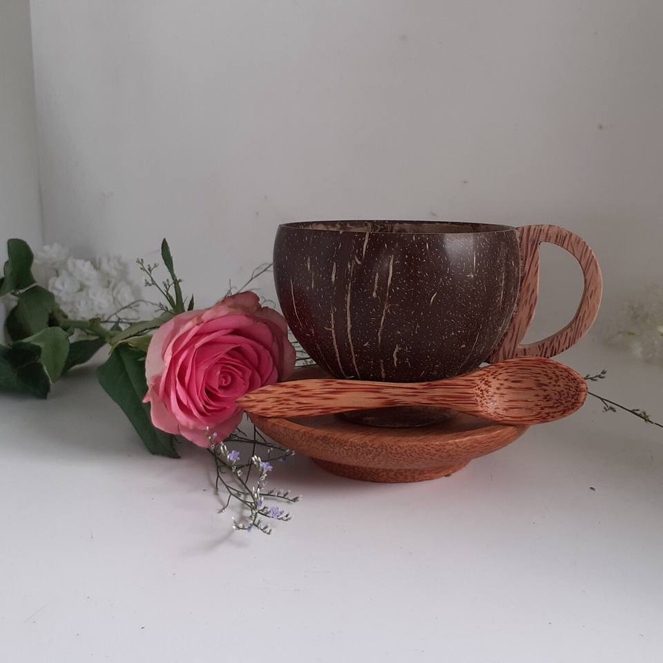 Taza de cáscara de coco artesanal Taza de madera reutilizable ecológica a precio barato Desechable con logotipo gratis