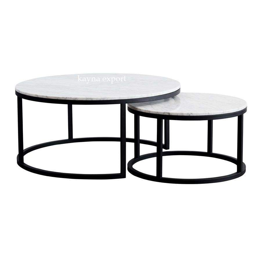 Mesa de centro de anidamiento redonda de estilo moderno artesanal con tapa de metal para sala de estar, muebles de gran oferta a precio competitivo