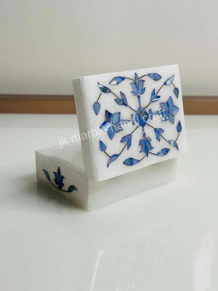 Caja de trabajo de mármol blanco artesanal con incrustaciones de flores para uso y regalos perfectos para mujeres y niñas tamaño-10x7,5
