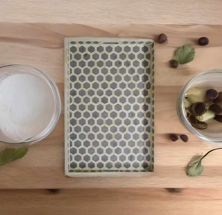 Bandeja con incrustaciones de hueso artesanal La bandeja para servir con incrustaciones de resina y hueso artesanal más vendida a un precio asequible