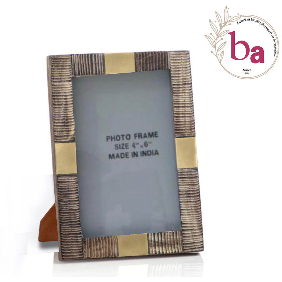 Artesanías Cuerno de búfalo Hueso Diseño de latón Marco de fotos de madera para decoración del hogar y sala de estar Artículo de Regalo perfecto