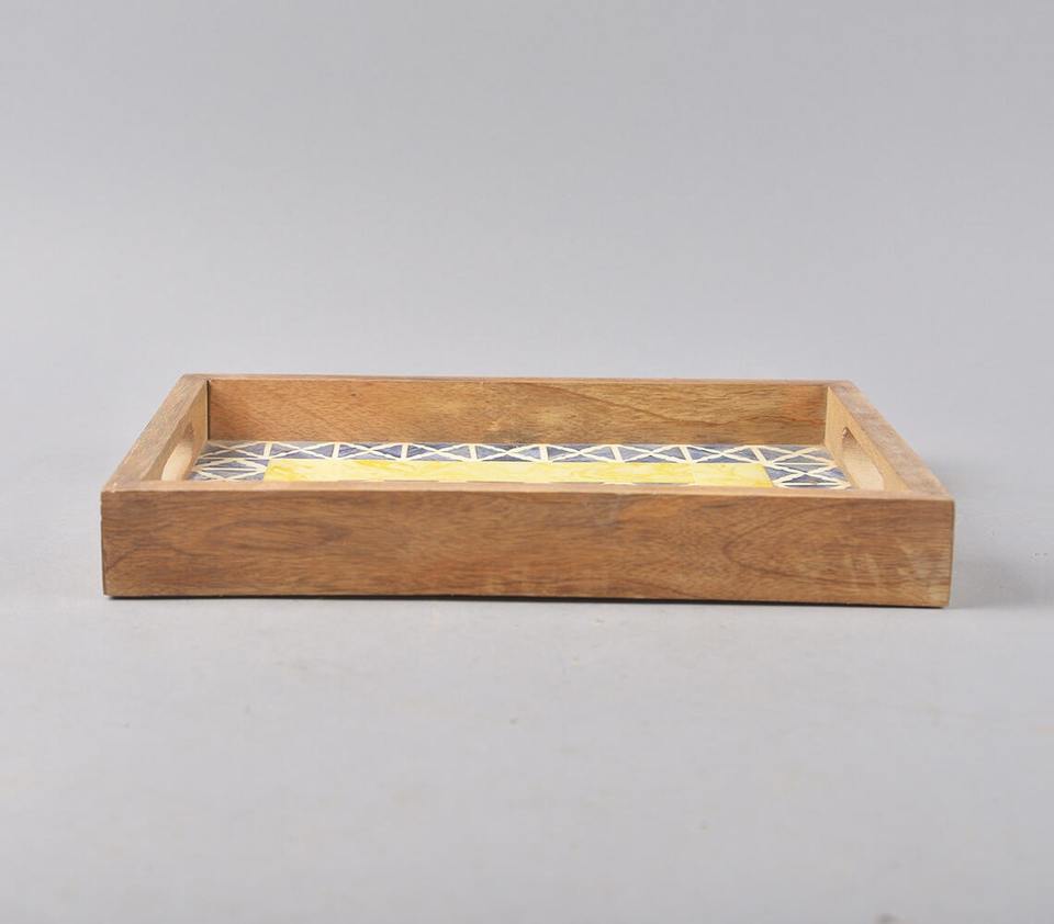 Bandeja de incrustaciones de hueso de forma Rectangular para manualidades, bandeja decorativa para el hogar para mesa de centro, patrón único, prueba de artesanía de hueso