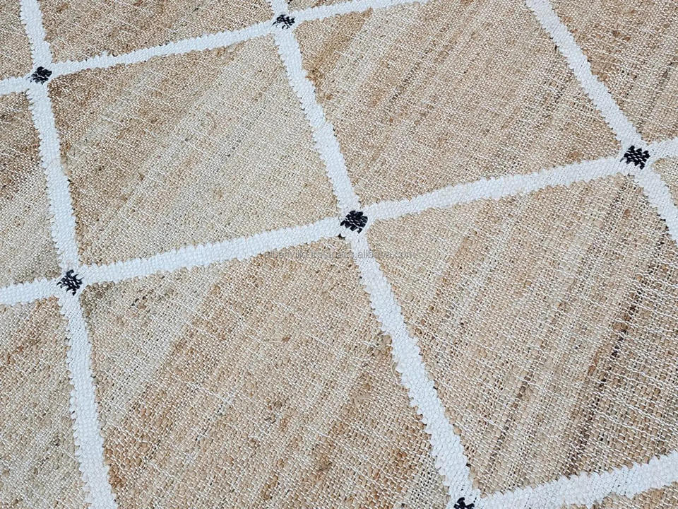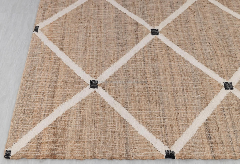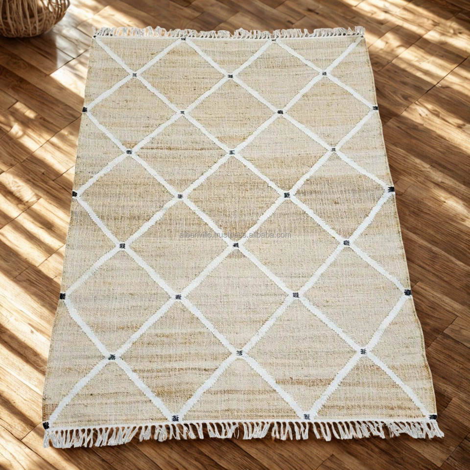 Alfombra de yute Kilim Handloom con patrón geométrico bohemio, Alfombra de fibra natural ecológica para compradores mayoristas
