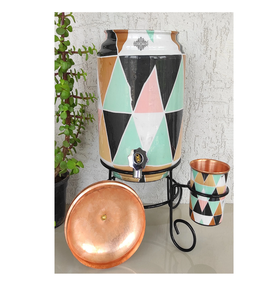 AALIYAN IMPEX Dispensador de almacenamiento de agua impreso de cobre puro 100% hecho a mano con grifo a prueba de fugas para uso en la cocina en la costa más baja