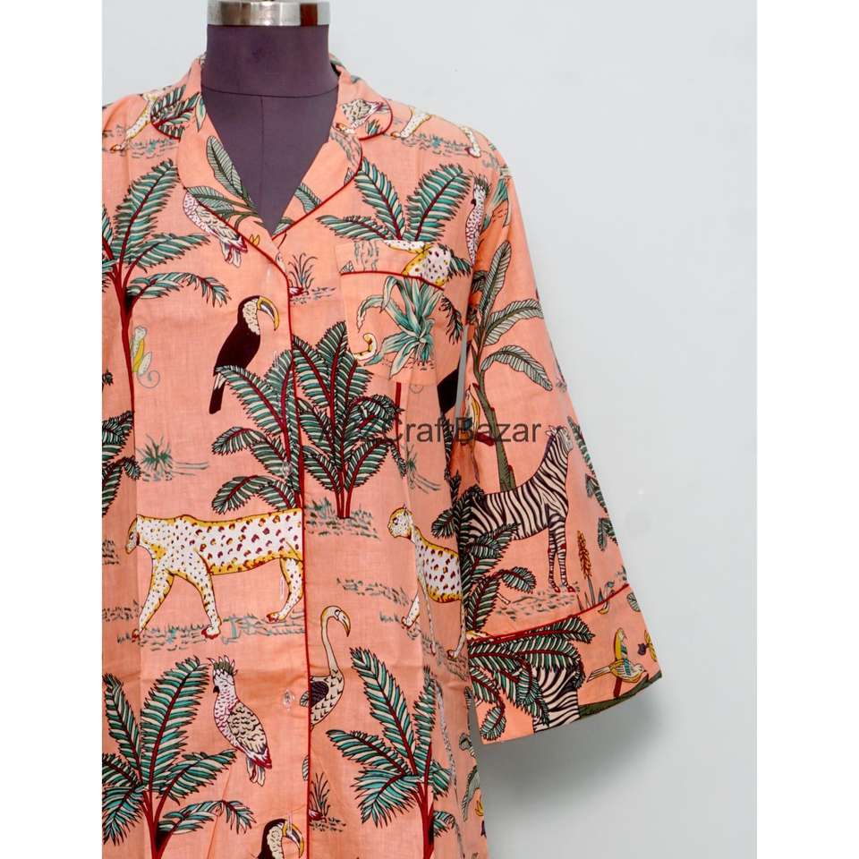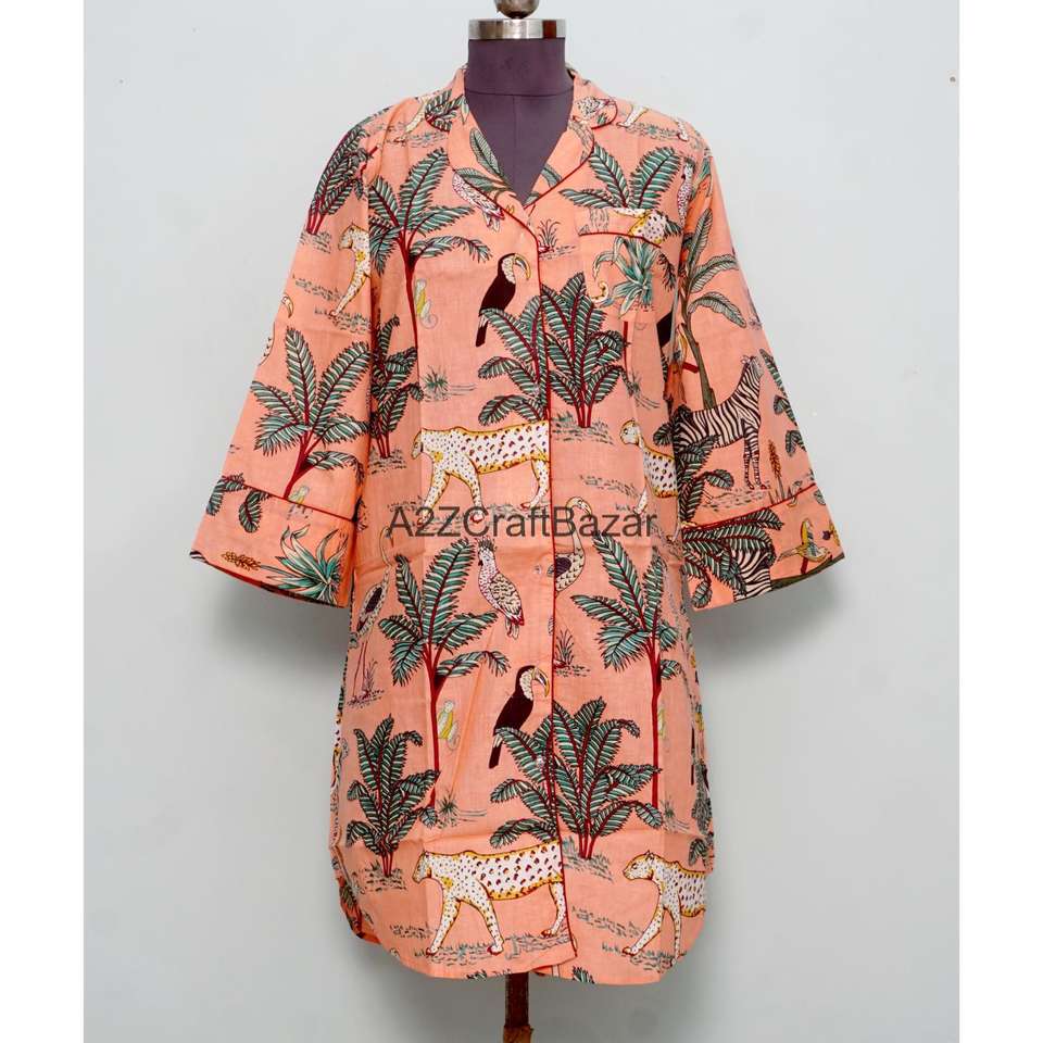 Camisa hecha a mano con estampado en bloque 100% algodón puro, manga 3/4, transpirable, con cierre de botones, para niñas y mujeres.