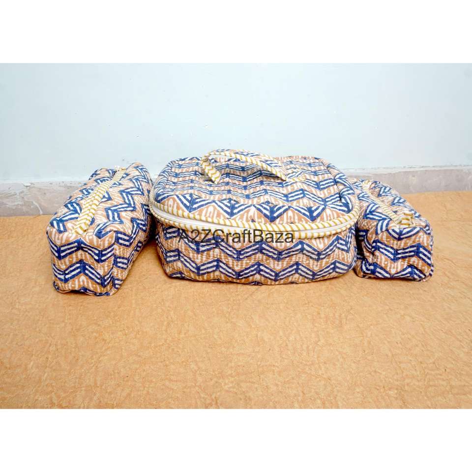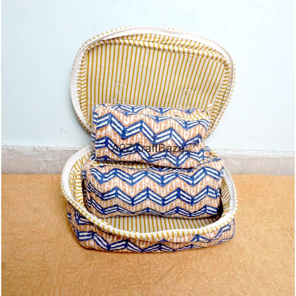 Bolsas con Cierre de Cremallera Hechas a Mano 100% de Algodón Puro con Diseño a Rayas para Uso Diario, Viajes y Organización de Maquillaje - Juego de 3