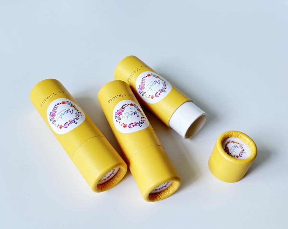 Tubo de papel Kraft amarillo de 10ml hecho a mano, contenedor de desodorante de loción de lápiz labial ecológico reciclable, embalaje de desaparición personalizado