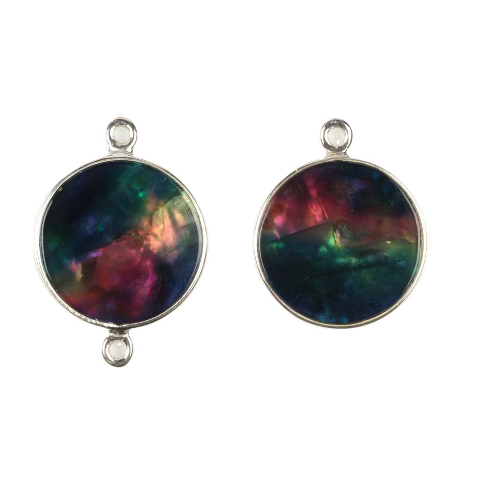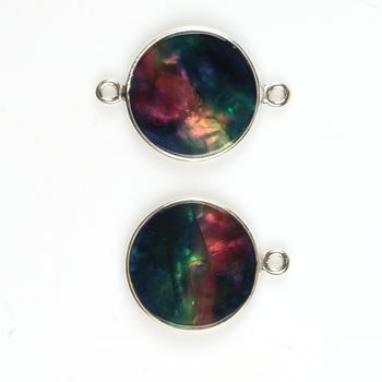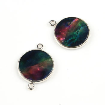 Nombre del Producto:Conector de dije chapado en plata con moneda redonda de concha de abulón múltiple de 12 mm