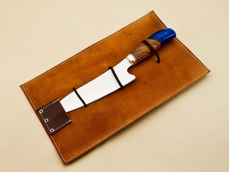 Cuchillo de Chef hecho a mano de 13,5 pulgadas, hoja de acero inoxidable personalizada de alta calidad, mango de resina de madera, bolsa de cuero, cuchillos de cocina MOQ 5 uds