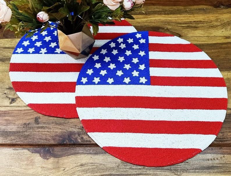 Juego de Manteles Individuales Redondos Hechos a Mano de 14 Pulgadas con Cuentas Plateadas y Doradas, Tapete de Secado de Pizarra y Vidrio con Patrón Ovalado para Comedor