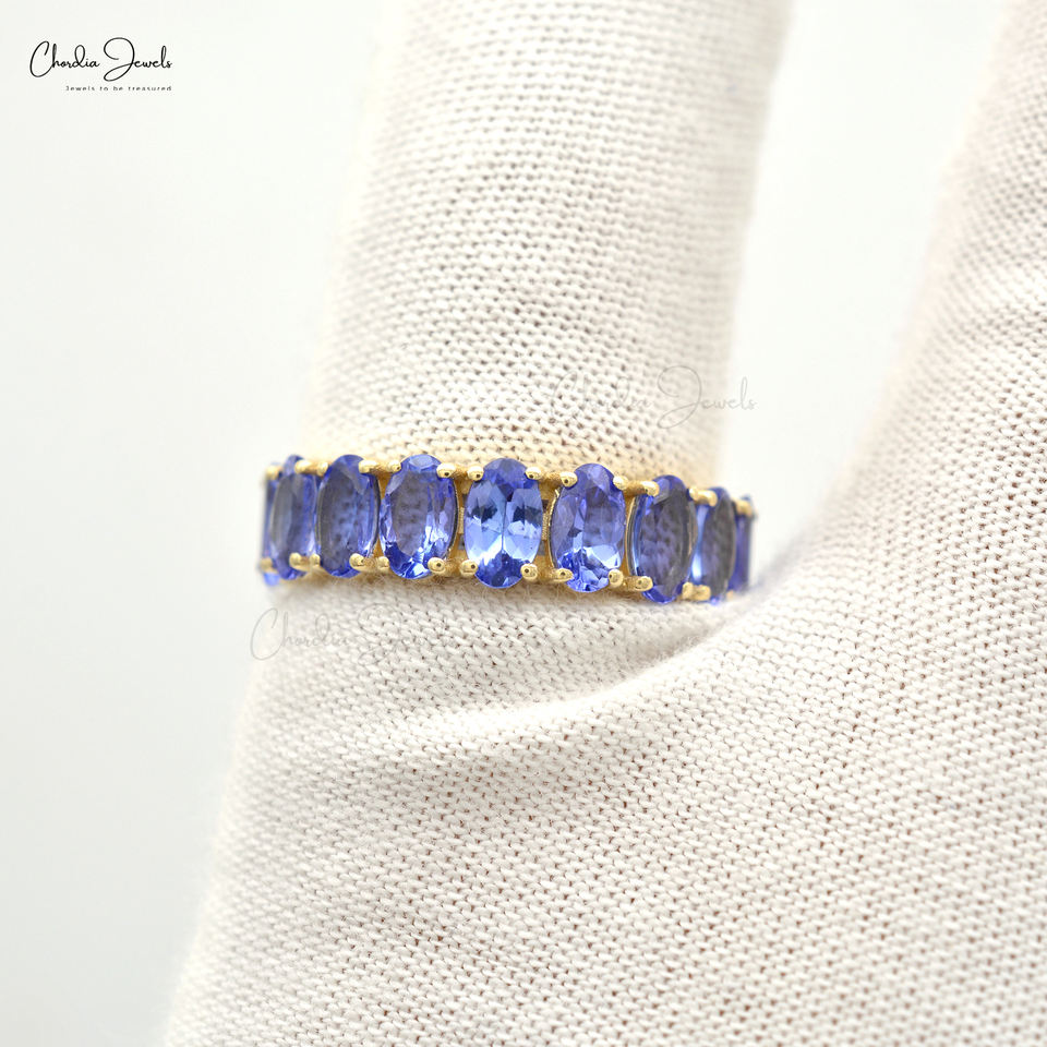 Anillo de Eternidad con Tanzanita Auténtica de 5x3mm Engastada en Oro Amarillo Puro de 14k Hecho a Mano, Piedra de Nacimiento de Diciembre, Compra al por Mayor