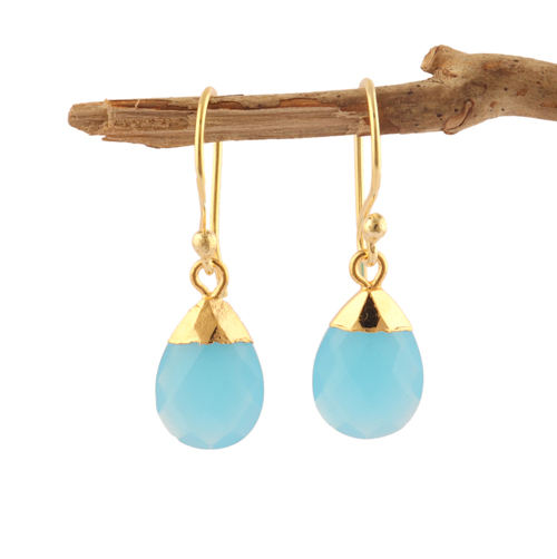 Pendientes colgantes de Latón chapado en oro de 18 quilates hechos a mano con forma de pera pequeña, impresionante corte Briolette, Calcedonia azul cielo, joyería de moda