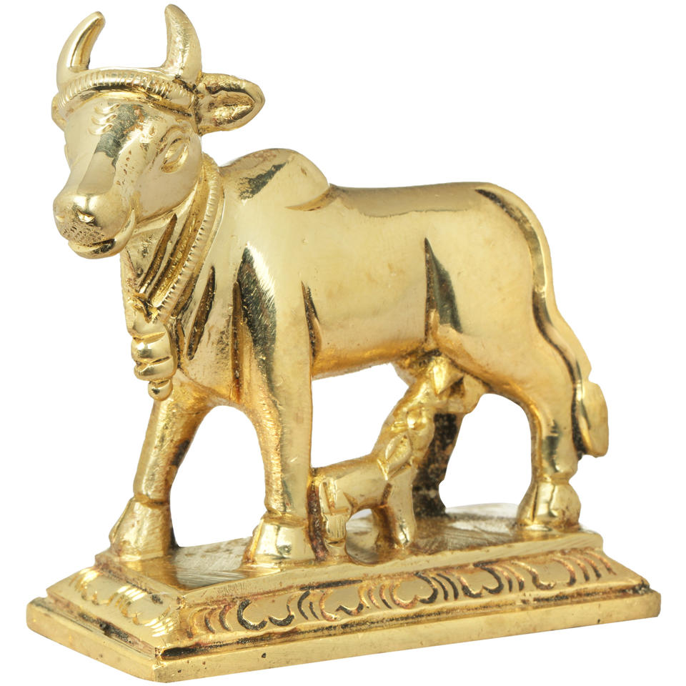 Escultura de vaca y Becerro de latón de 2 pulgadas hecha a mano pequeña estatua para regalar hecha en la India