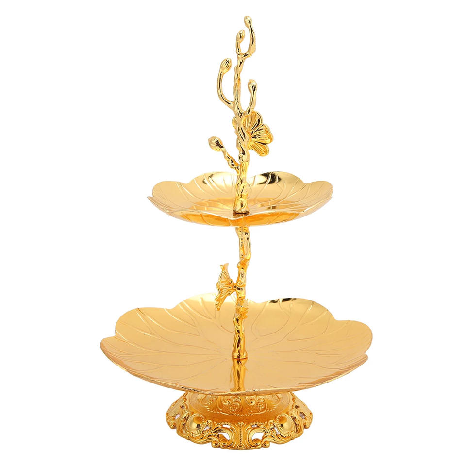 Soporte de Pastel de Metal de 2 Niveles Hecho a Mano, Soporte de Exhibición Redondo, Vajilla Chapada en Oro, Herramienta para Pastel de Boda, Cumpleaños y Fiesta