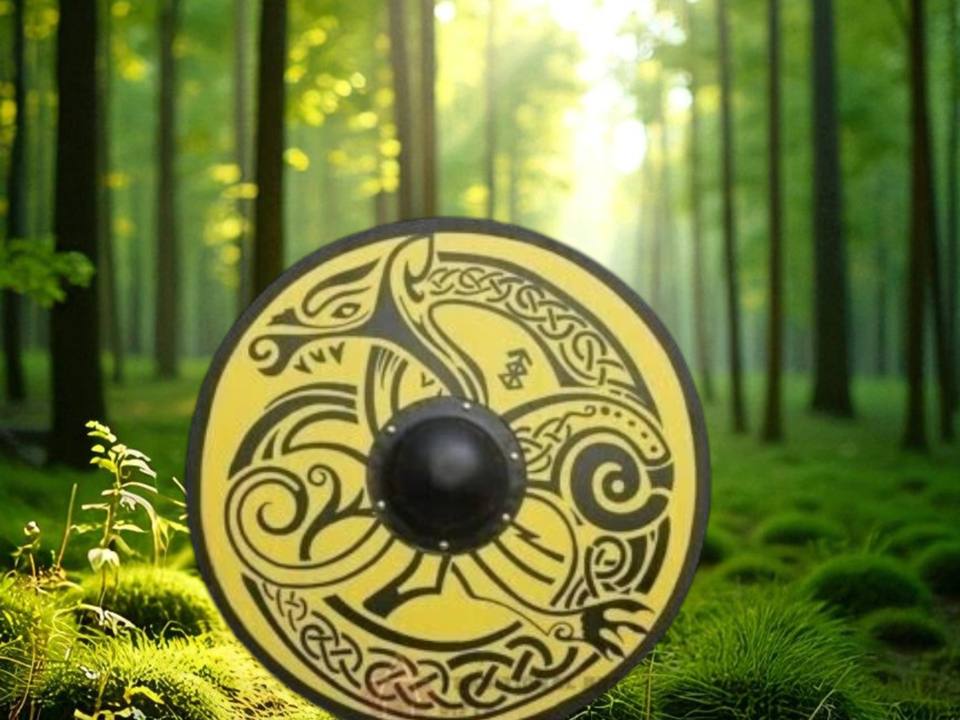 Escudo Redondo Vikingo de Madera Hecho a Mano de 24 Pulgadas con Cara de Dragón, Decoración de Alta Calidad para el Hogar