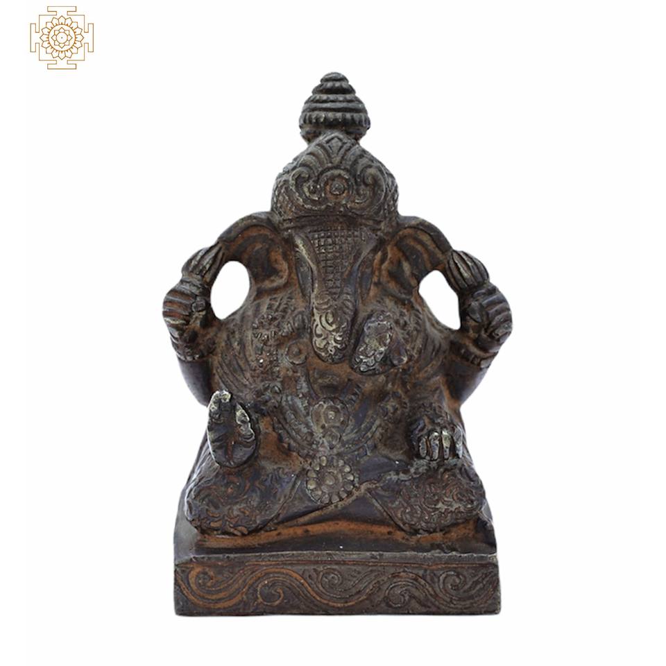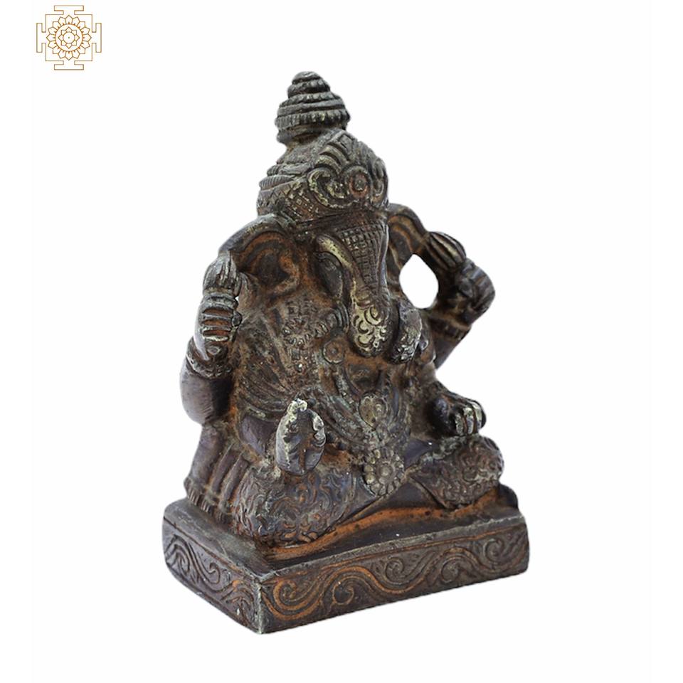 Exótica Estatua de Ganesha de Latón Hecha a Mano en India, 3.5 Pulgadas, Pequeña, Decoración de Mesa, Escultura ZEP937, Hecho en India