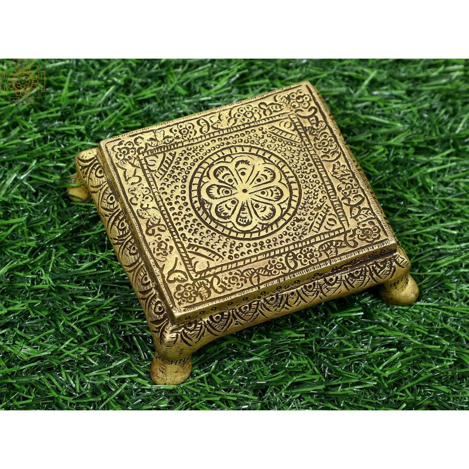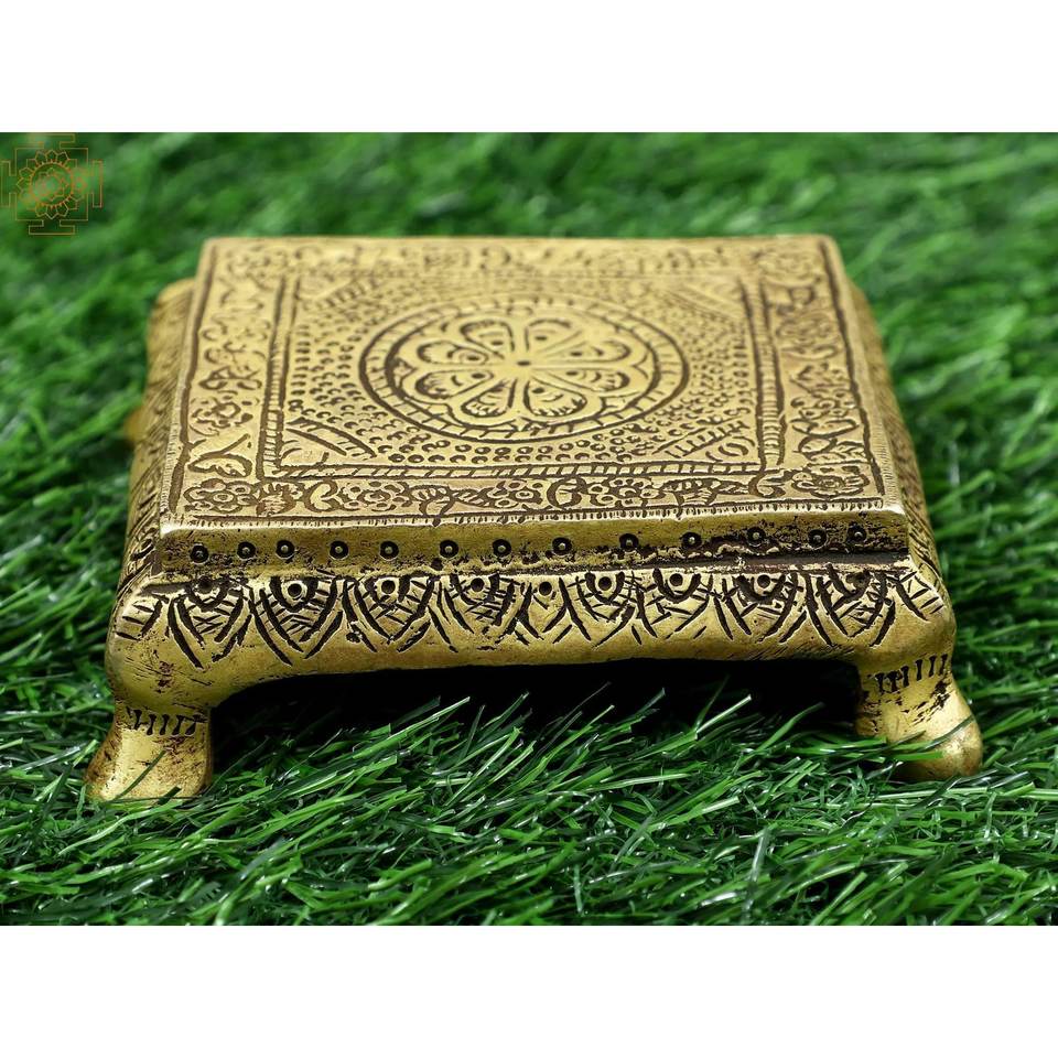 Chowki Tradicional Hecho a Mano de 3 Pulgadas en Latón, Pequeño Artículo Decorativo para el Hogar, India Exótica HLA888