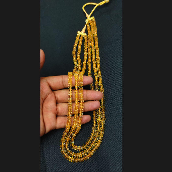 Hecho a mano de 3 capas citrino cuarzo collar llamativo con cuentas 3-4mm Roundel cuentas de piedra lisa citrino Natural hecho a mano