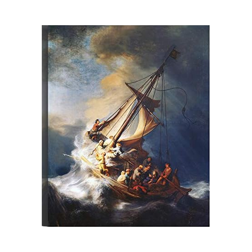 Hecho a mano 30x24 pulgadas Giclee Canvas Art Figura clásica en Storm Sea Galilee World Classic Rembrandt Van Rijn Oil Wall Art