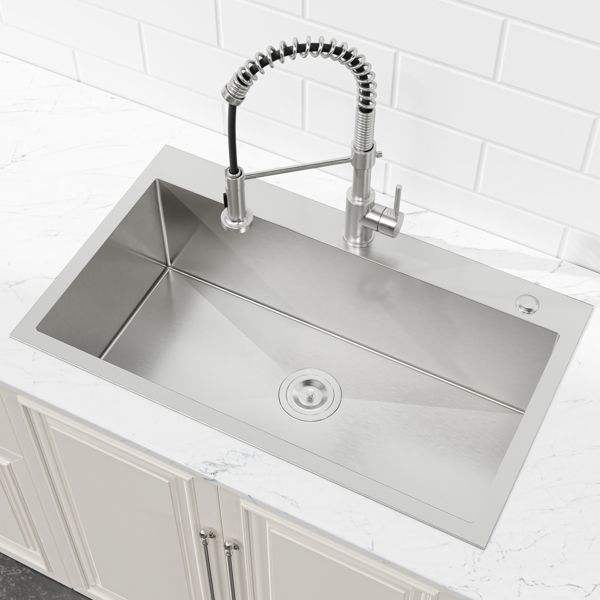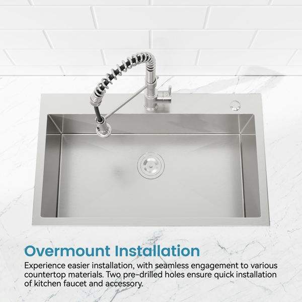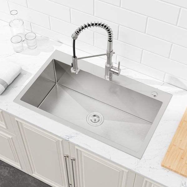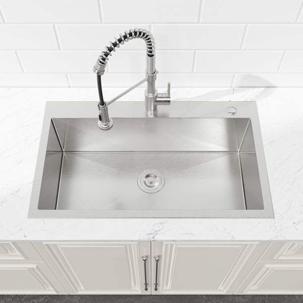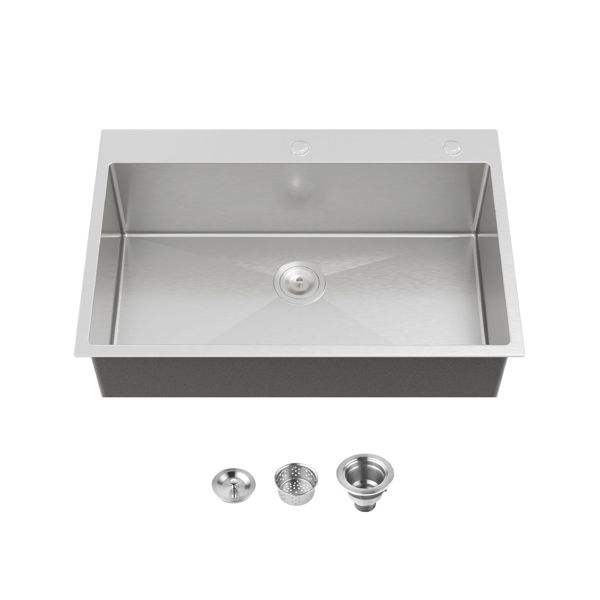 Fregadero de cocina individual hecho a mano de 33x22 pulgadas en níquel cepillado para montaje sobre encimera con gancho de desagüe estándar de EE. UU. (No se puede enviar)