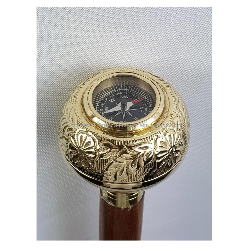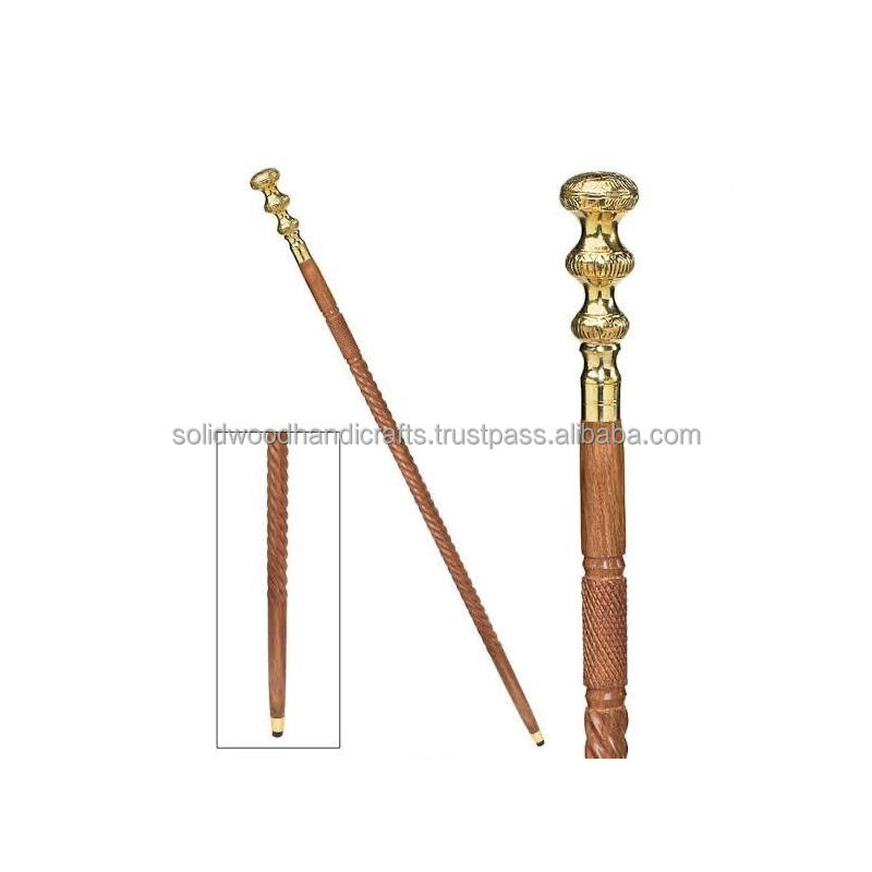 Bastón de Paseo Hecho a Mano con Mango de Latón de Diseño de 36 Pulgadas y Eje de Madera de Color Marrón, Bastón de Paseo Unisex.