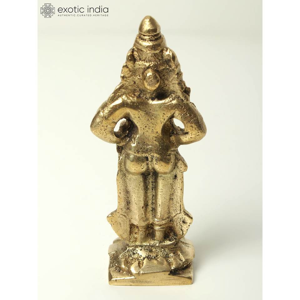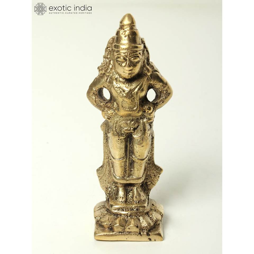 Escultura de latón de 4 pulgadas pequeña hecha a mano Lord Krishna en postura de pie para el hogar y el templo hecha en la India