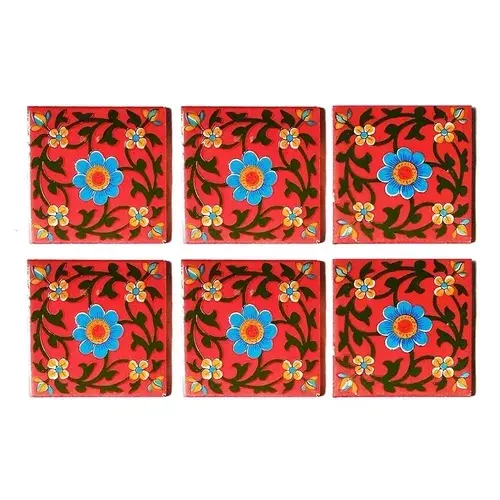 Azulejos de cerámica multicolor hechos a mano de 4x4 pulgadas, cerámica azul decorativa para pared de salón exterior y piso, paquete de 6
