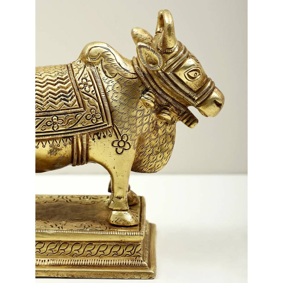 Hecho a mano de 5 pulgadas pequeña escultura Nandi de latón grabado de pie artículo hecho en La India
